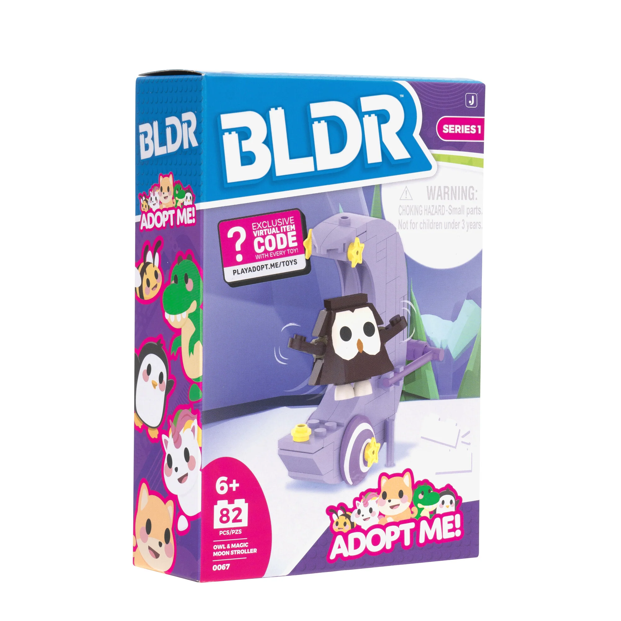 Get ready to bring your favorite online game to life with the exciting, buildable Adopt Me Owl and Magic Moon Stroller building set! With this fun construction set, you can build an adorable Owl with moveable wings. Plus, there's a cool rolling Magic Moon stroller for the Owl to cruise around in style! Remember to redeem your Adopt Me Exclusive Virtual Item Code in-game for even more fun! BLDR bricks are compatible with all major construction brands, enabling you to expand and build your Adopt Me world! This thrilling Adopt Me playset is perfect for kids and fans who love to build and create!